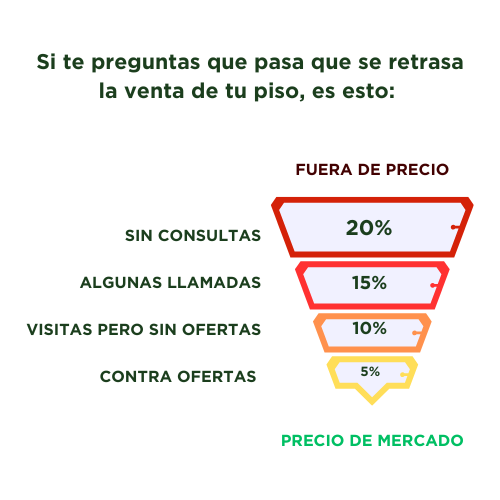 Cuando un piso está fuera de mercado, se nota desde el primer momento: no llegan consultas ni visitas. Si el precio baja un poco, puede haber llamadas pero no ofertas firmes. Ajustando más, se logran visitas, aunque sin propuestas concretas. Solo cuando la vivienda se acerca realmente al precio de mercado, aparecen contraofertas y negociaciones reales que desembocan en la venta.